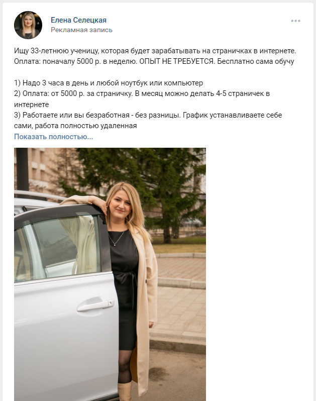 For example, this ad is personalized by sex and age: 'Looking for a 33-year-old female trainee'.