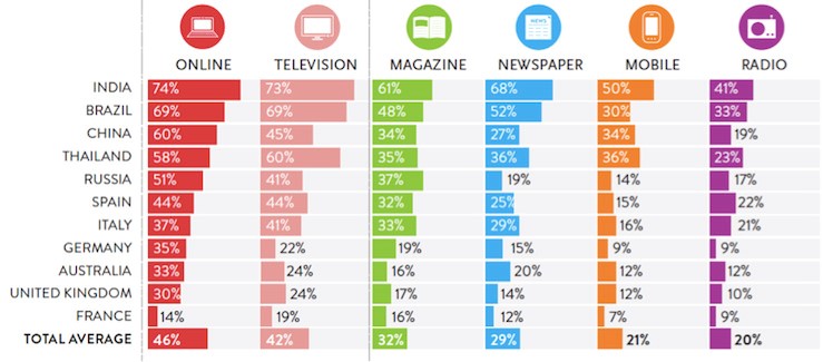 Nielsen survey regarding advertising channels efficiency from the viewpoint of car owners in different countries