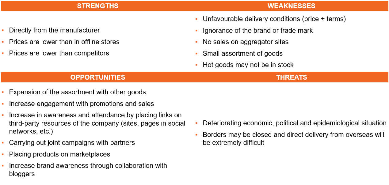 An example of a SWOT analysis of an e-shop of a foreign manufacturer