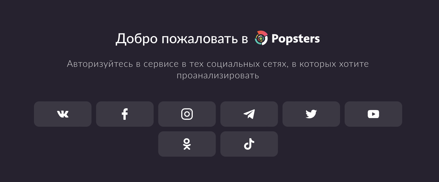Popsters allows you to generate reports on various communication channels, among which, in addition to Telegram, there are other popular Russian networks - Youtube, Odnoklassniki, VKontakte.