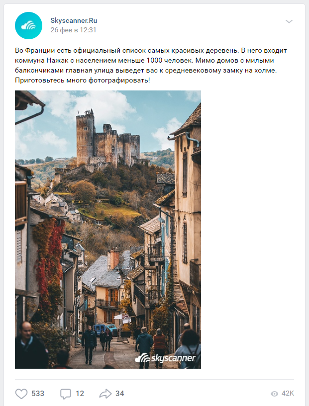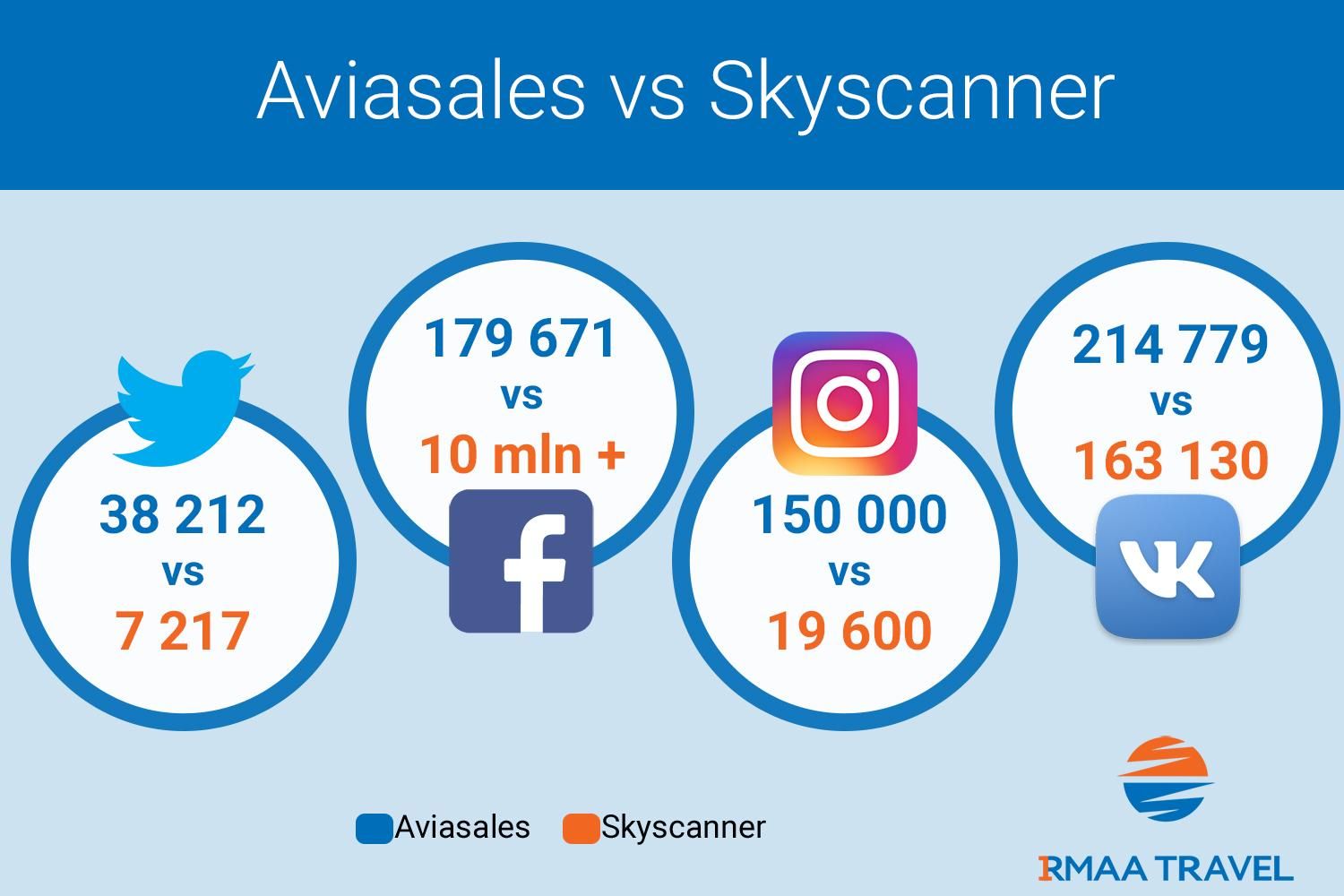*Some may be surprised by the number of Skyscanner subscribers on Facebook. As this company is international and has several accounts for different regions, the number of subscribers is summarized, so not all these subscribers follow portal updates in the Russian market.