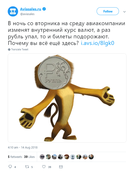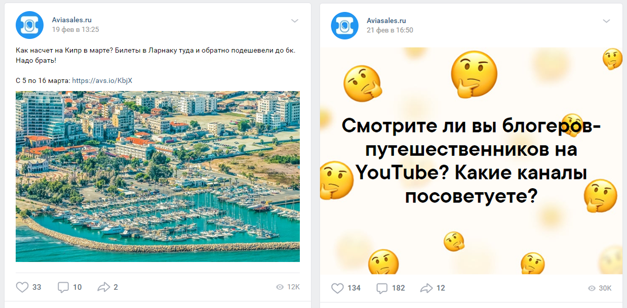 At the same time, according to Aviasales members, Twitter is the main area of experiments where the company tests posts before publishing them on Facebook and VK, which audience is more diversified.