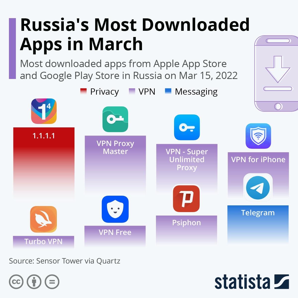If at the end of February 2022, 16 VPN products entered the TOP 100 of the most downloaded apps in Russia on iOS and 8 - the TOP 100 for Android (data data.ai ), then in March 9 services were already in the TOP 10 together with Telegram (analytics of the Statista service), which indicates a new, important trend for the market - the longer popular online resources are blocked for the Russian audience, the higher the popularity of VPN services will be.