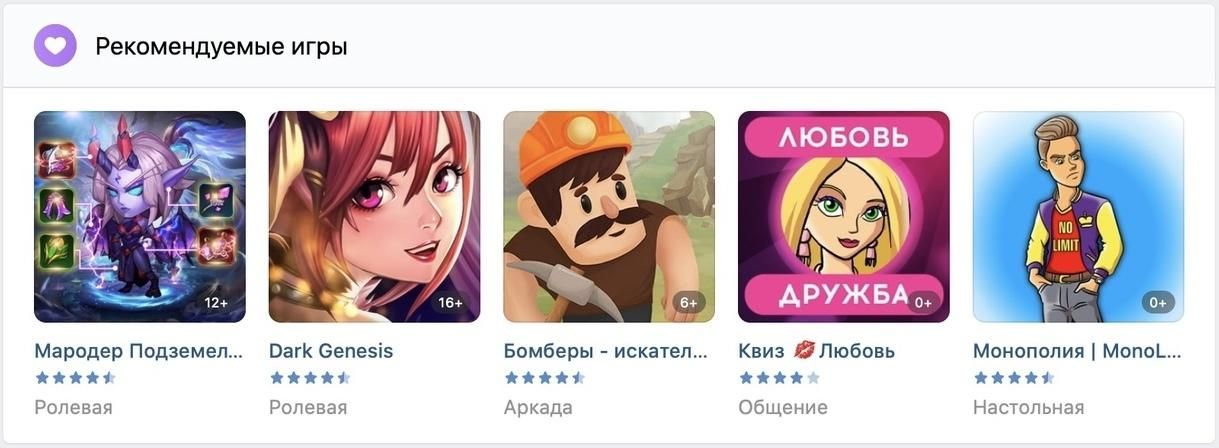 Free user engagement methods are available through collections for all games in the catalogue. Some of the collections are compiled by VKontakte editors at the request of developers, and some are formed by algorithms.