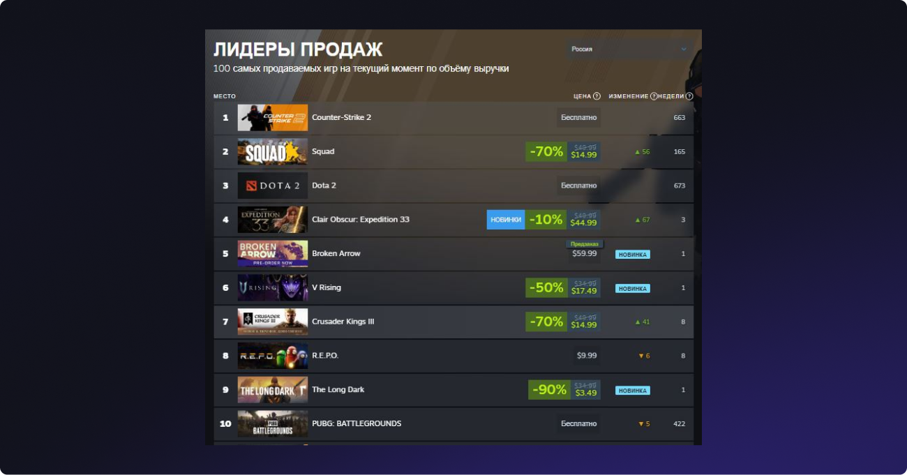 According to Steam charts, the top 10 sales leaders in Russia now include: