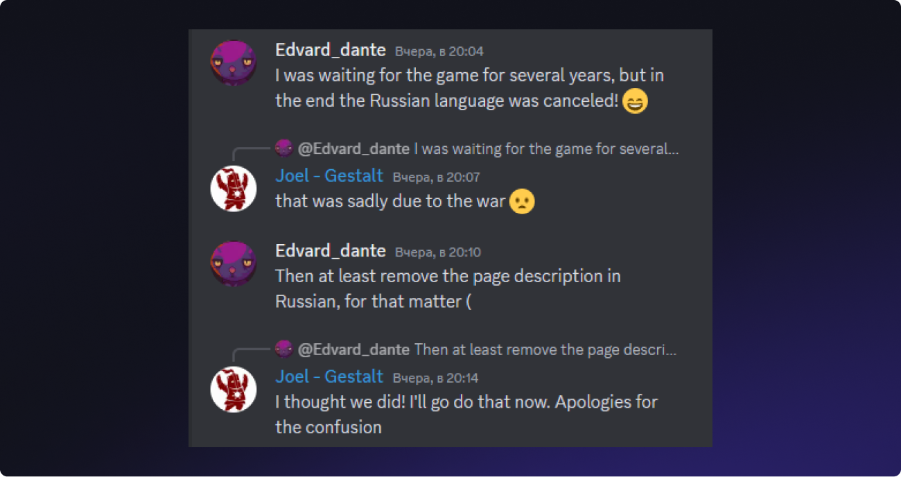 One solution to this issue is to change the region of payment. However, there are instances where this is not a viable option. Some publishers are removing Russian localizations from games, including those that are already released or in the process of being released. In particular, this happened in the case of the Gestalt Steam & Cinder game, from which the previously promised Russian subtitles disappeared at the time of release.
