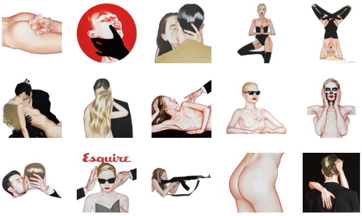 A set of Telegram stickers by a popular Russian artist Masha Yankovskaya, repeating sketches of her most famous paintings, including the iconic cover of Esquire ”literary issue"