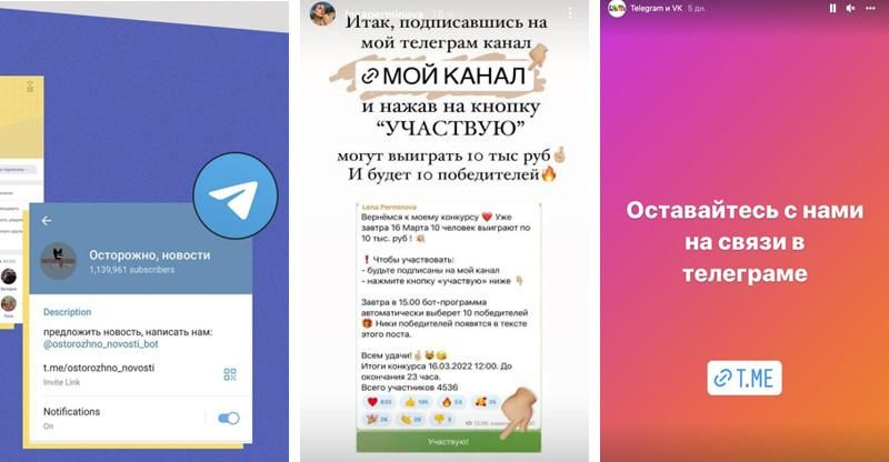 In both cases, the companies devoted a huge amount of time to content elaboration and search for their audience on Telegram. Therefore, you need to understand that “to promote the channel in a week”, as some bloggers tried to do after the news about the blocking of Instagram in Russia, would not work.