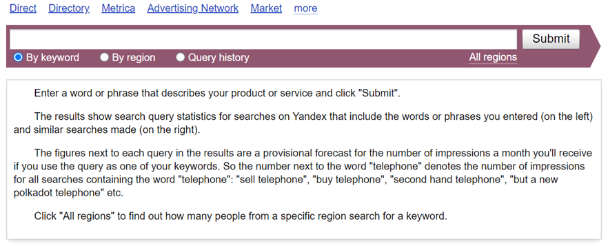 The Yandex search engine regularly gathers information about users’ requests. A convenient Yandex WordStat service has been created based on this data. It helps get acquainted in detail with the needs of Runet visitors, track trendy topics, and choose the most suitable keys.