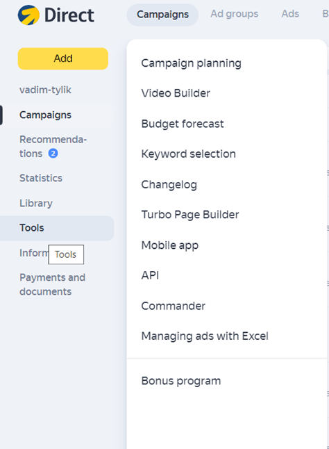 Besides creation, launching and tracking the status of campaigns, the Yandex.Direct offers some more services. Using Yandex.Direct API you can create applications for managing advertising campaigns. For example, you can use your own bid management algorithms. There is also Yandex.Direct.Commander. It is suitable for managing large-scale campaigns when launching contextual advertising. It is easy to work with a large amount of data in Commander.