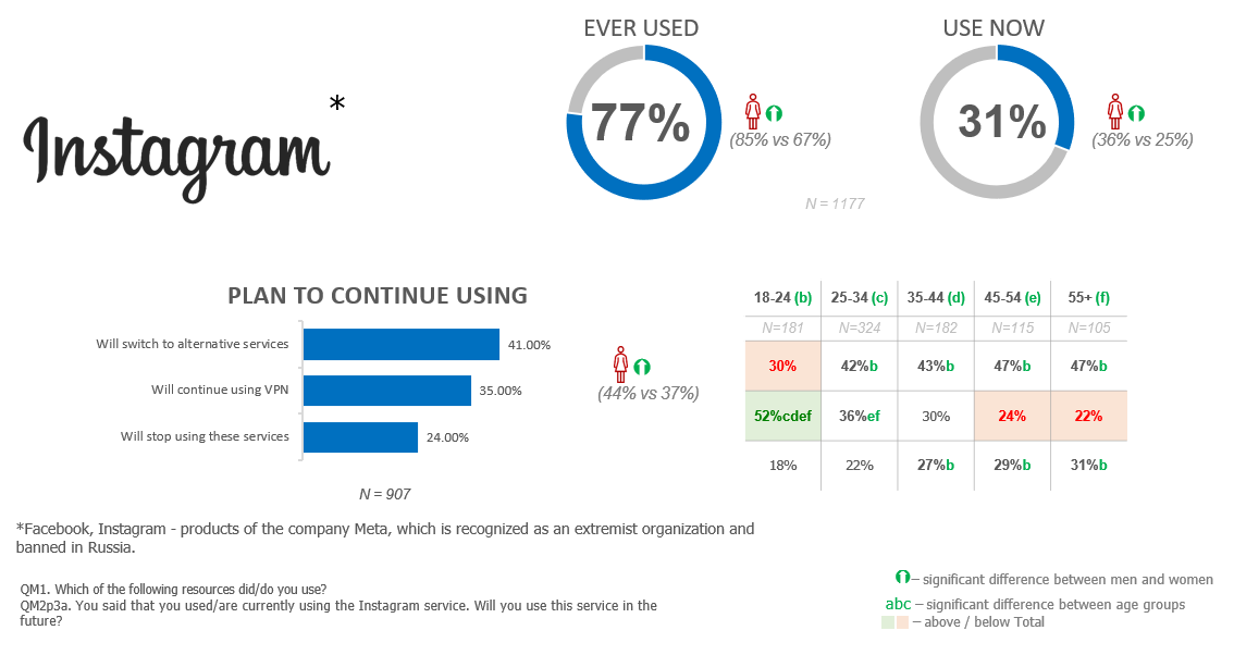 Indeed, based on another study from Online Market Intelligence (OMI), this trend can be traced. Thus, 35% of the current female Instagram* audience in Russia continues to use the resource through VPN. For Facebook* and Twitter, these figures are much less than 18%, but still, a certain percentage of users still remained there. Besides, you can’t ignore the Meduza** online media, which became one of the most downloaded applications in Russia at the end of February (according to data.ai). Viewing this resource in the region is also impossible without connecting to remote servers. Many other resources currently blocked in Russia, but still in demand among regional users can be added to the list. With the help of VPN.