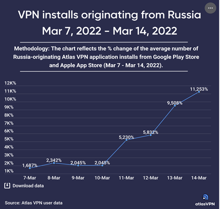 Therefore, the number of users of VPN services in Russia is increasing every day. AtlasVPN specialists are sure of this, having registered a record percentage of installations in the region on March 14 – by 11, 253% compared to previous years. Most likely, this figure will increase further. As Russians are increasingly beginning to understand the advantages of VPN programs, thanks to personal research, advice from friends and, of course, competent promotion of VPN products on the market.