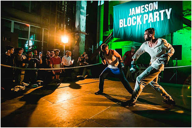 Block Party has its "schticks" which attract so many consumers willing to be placed on the list. For example, at a party you use special currency – Jamesonodollars -which you can make bids with. The atmosphere is enhanced still further by cards, shell games and traditional seven fights in the boxing ring at "the Olympic system".