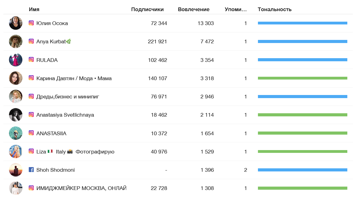In addition, the services will help you to create a portrait of the most active audience and even generate the top authors. The authors' analysis can be used, for example, when generating a pool of bloggers for further cooperation in the destination promotion.