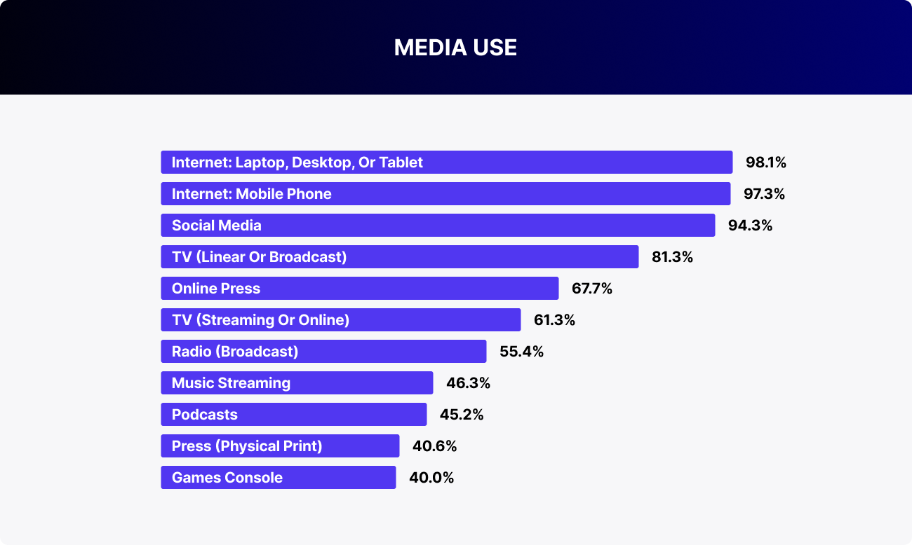 Online media in Russia is read by 67.3% of internet users aged 16 and older. That’s roughly 89.4 million people. Print publications reach about 53.8 million. The press still holds its place as a meaningful source of information, especially among older age groups. However, media consumption habits are shifting: the practice of reading print is fading, while digital consumption continues to grow, both in reach and engagement.
