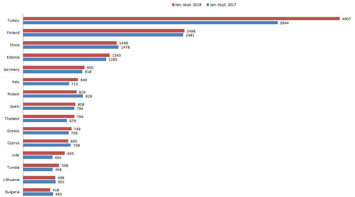 The drop in the tourist flow in per year terms is noted, following the results of three quarters, for such markets as the USA (-11%), Great Britain (-2%); there is also a slight decrease in the tourist flow to a number of Western European countries such as Norway, Belgium, the Netherlands, Switzerland, Sweden etc.