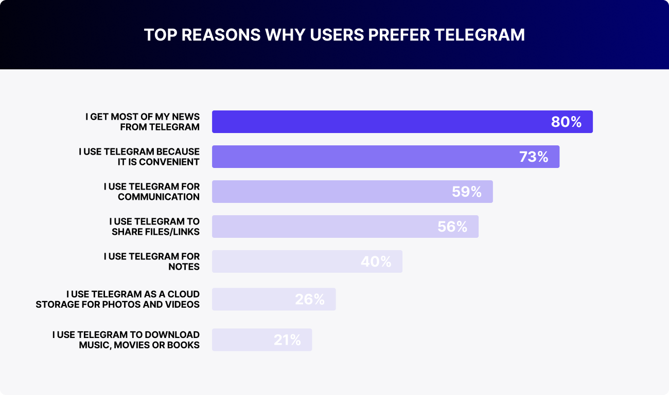 Telegram users are most interested in blogs, news, and media, the 18+ category, sales, as well as humor and entertainment.