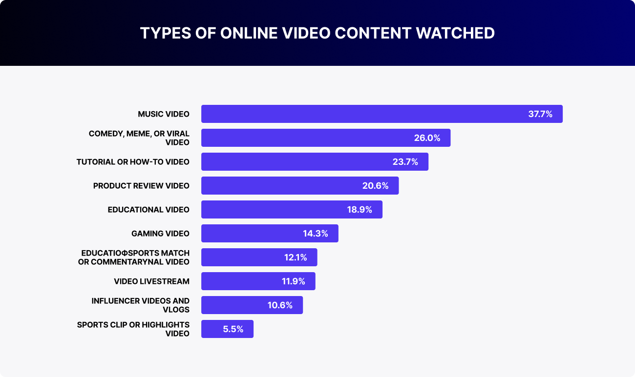 Yes, entertainment formats still lead on YouTube: 37.7% watch music, 26% watch comedy content. But this doesn’t prevent educational videos from finding their audience — especially if they are engaging, visually appealing, and presented with storytelling elements. Edutainment — where value combines with engagement — works best.