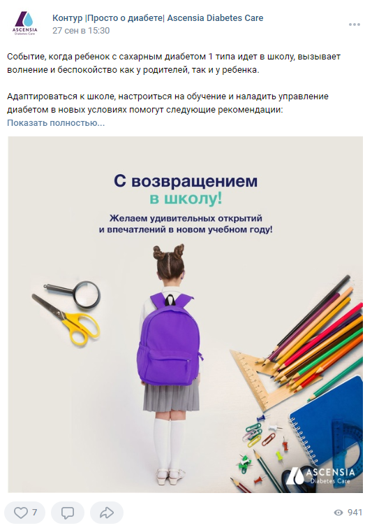 For example, the manufacturer of diabetes testers Ascensia Diabetes Care in its VKontakte group says that a person's life does not stop with the diagnosis and promotes a more convenient and comprehensive approach to the disease with the help of its products, adding links to useful sources on the subject to the public content.