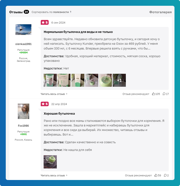 Reviews of KUNDER bottles on Otzovik.ru