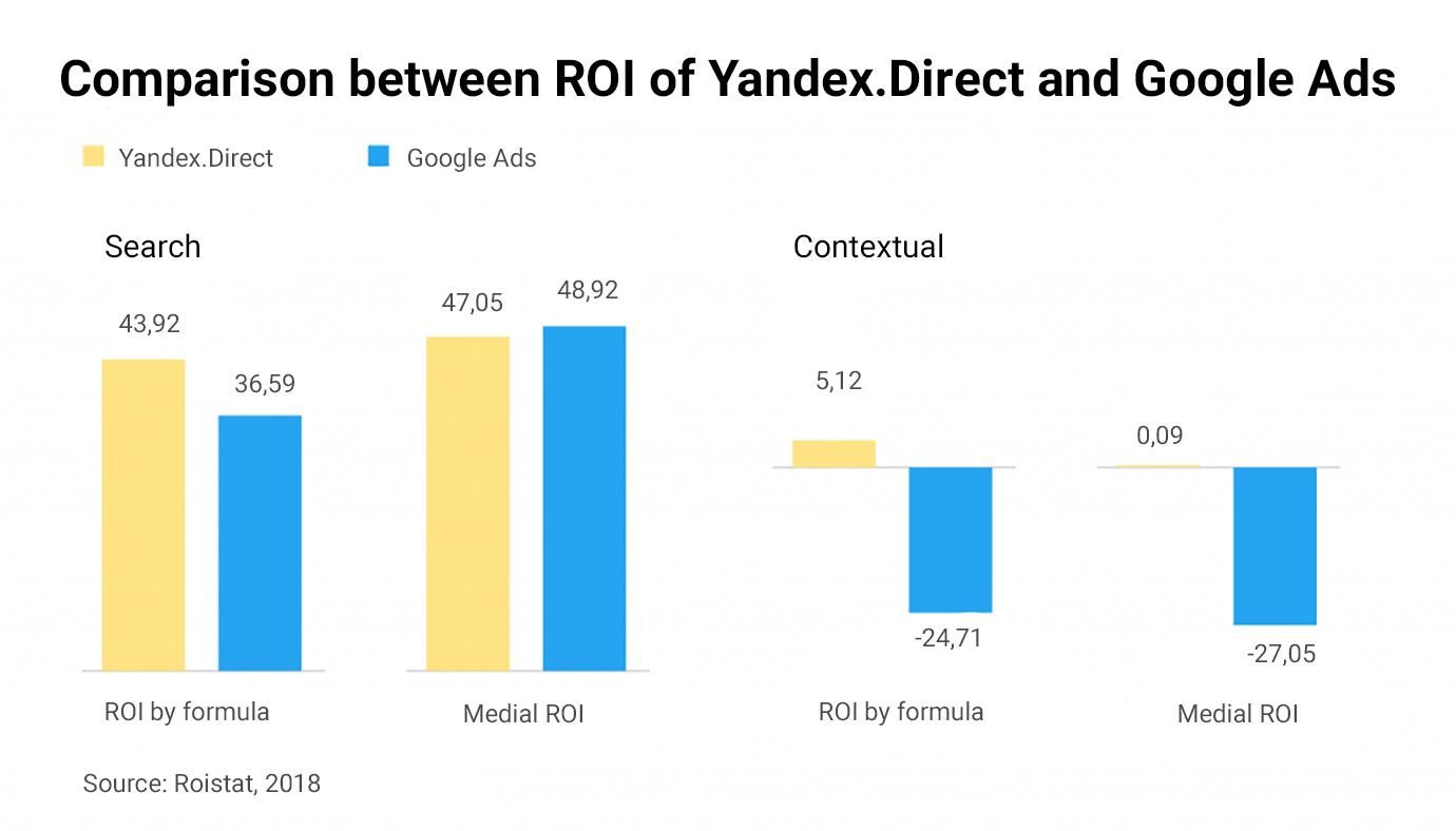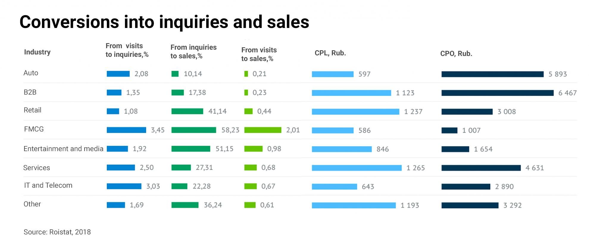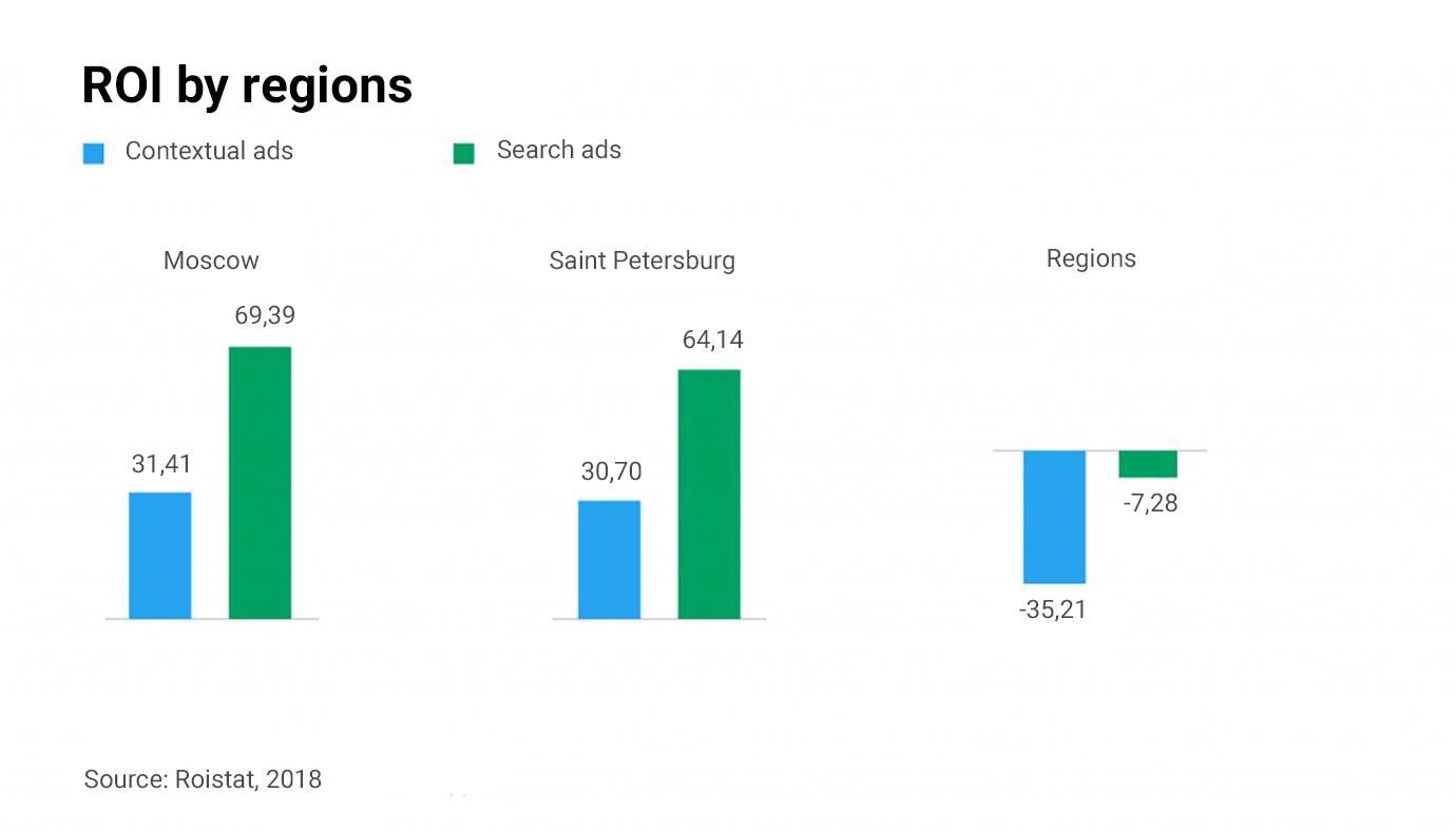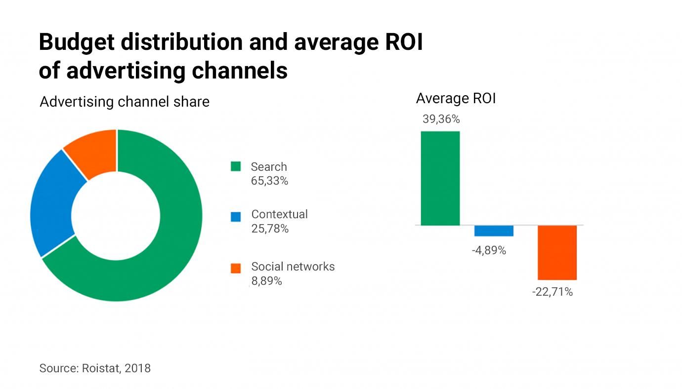 Roistat (end-to-end analytics system) annually conducts a study to evaluate efficiency of advertising tools on grounds of aggregated and anonymous data from thousands of advertisers. In 2018, 5,000 advertisers were sampled.