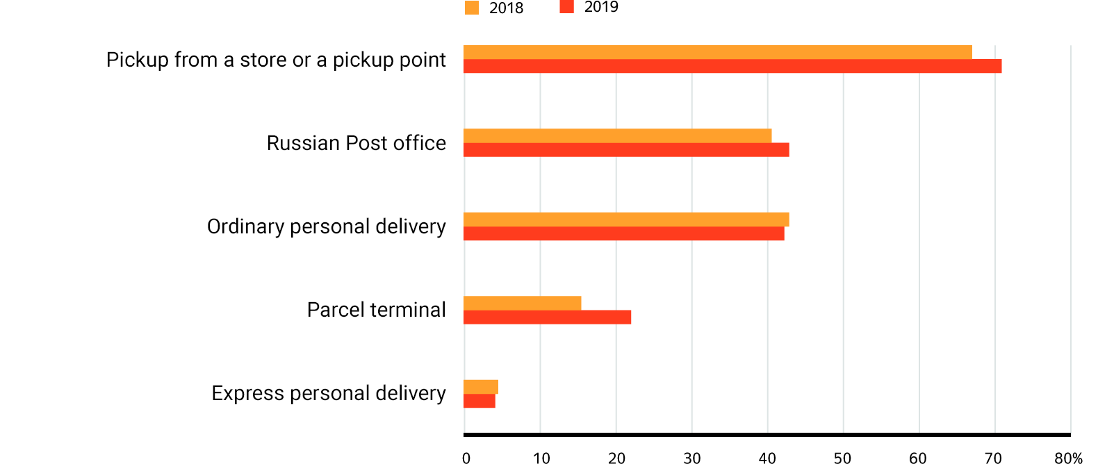 Percentage of respondents who used this method of delivery from a Russian online shop at least once during 12 months.