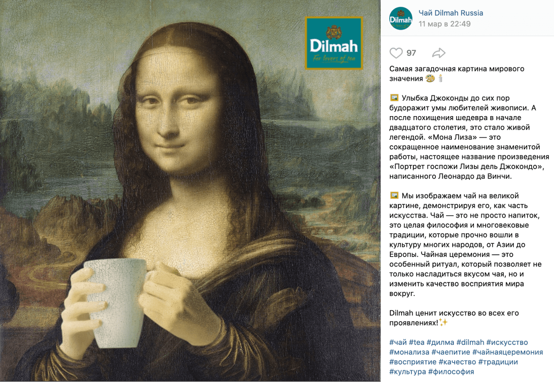 In the period of self-isolation, Russians became more interested in art and self-education and the tea consumption rose. We decided to combine these Russians’ preferences and implemented them in a new content strategy for the Dilmah brand on social media.