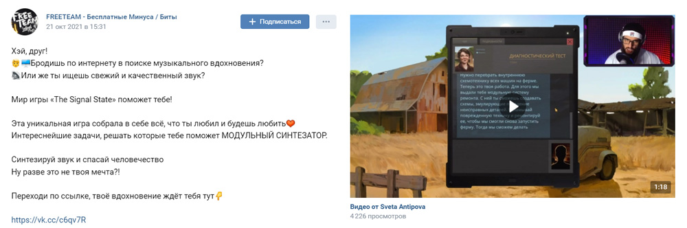 We took the top dedicated videos that we created together with bloggers at the previous stage and integrated them into advertising posts in the VK community. Advertising posts were placed in communities for gamers and for beatmakers.