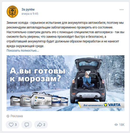 Posts about an updated version of VARTA Partner Portal were published in seven relevant groups in VKontakte.